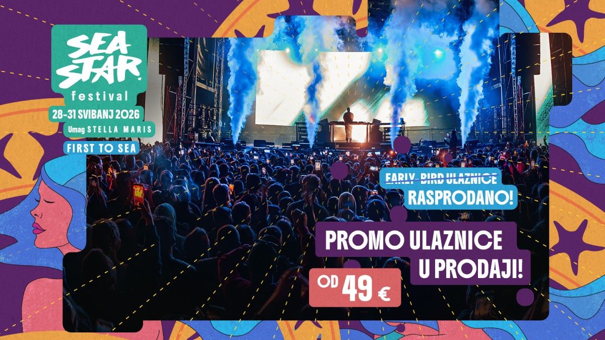 Prvi kontingent ulaznica za osmo izdanje Sea Star Festivala razgrabljen je superbrzo! Early bird ulaznice jučer su puštene u prodaju i nestale su u manje od 20 sati. Svoj dolazak u Umag potvrdili su fanovi iz 21 države, od Europe do Sjeverne Amerike. Osim Hrvatske, Slovenije i Italije prednjači publika iz Austrije, Švicarske, Njemačke, Srbije, BiH, Češke, Mađarske, Belgije i Velike Britanije, dok su ulaznice prodavane i u SAD-u i Kanadi. Sjajan prodajni start došao je nakon što je najavljen tek prvi val izvođača koji obećava nezaboravan početak ljeta u laguni Stella Maris, od 28. do 31. svibnja 2026. godine.